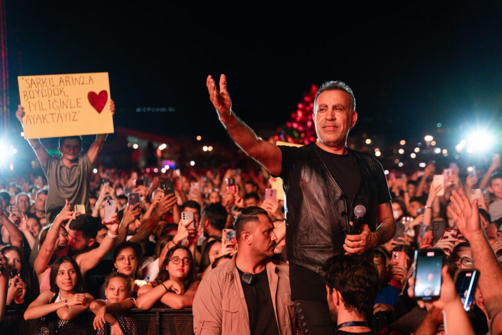 Zaman zaman seyircilerin arasında yürüyerek şarkılarını seslendiren sanatçı, sahnesinin bir klasiği olarak, rahmetli annesinin sevdiği şarkılardan oluşan “Annemin Sevdiği Türküler” bölümünde söylediği hareketli türkülerle de Çanakkalelileri coşturdu.